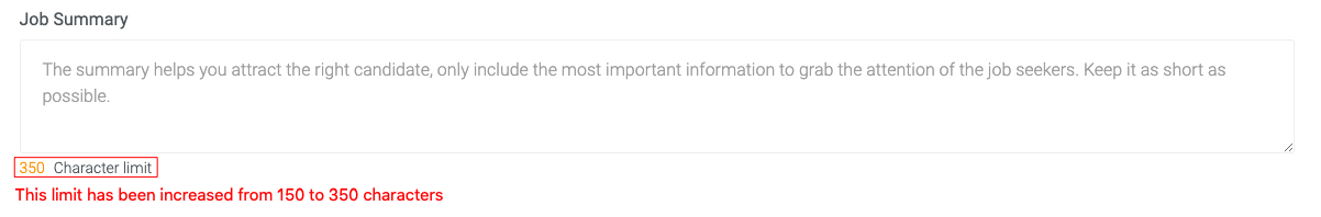 - Job Summary: Use this section to grab the attention of your target audience by giving an "elevator pitch" that outlines the expectations of the vacant position. To help you with coming up with a more descriptive Job Summary, BrighterMonday has extended the Job Summary section in the Applicant Tracking System from 150 to 350 characters as seen in the image below: